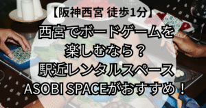 西宮でボードゲームを楽しむなら?駅近レンタルスペースASOBI SPACEがおすすめ! 「西宮で友達とボードゲ… 続きを読む: 西宮でボードゲームを楽しむなら?駅近レンタルスペースASOBI SPACEがおすすめ!