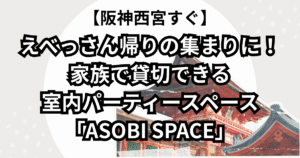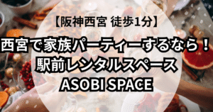 西宮で家族パーティーするなら。駅近レンタルスペースASOBI SPACEで叶う「あたたかい時間」 年末年始、街… 続きを読む: 西宮で家族パーティーするなら。駅近レンタルスペースASOBI SPACEで叶う「あたたかい時間」 - 【阪神西宮すぐ】えべっさん帰りの集まりに!家族で貸切できる室内パーティースペース「ASOBI SPACE」