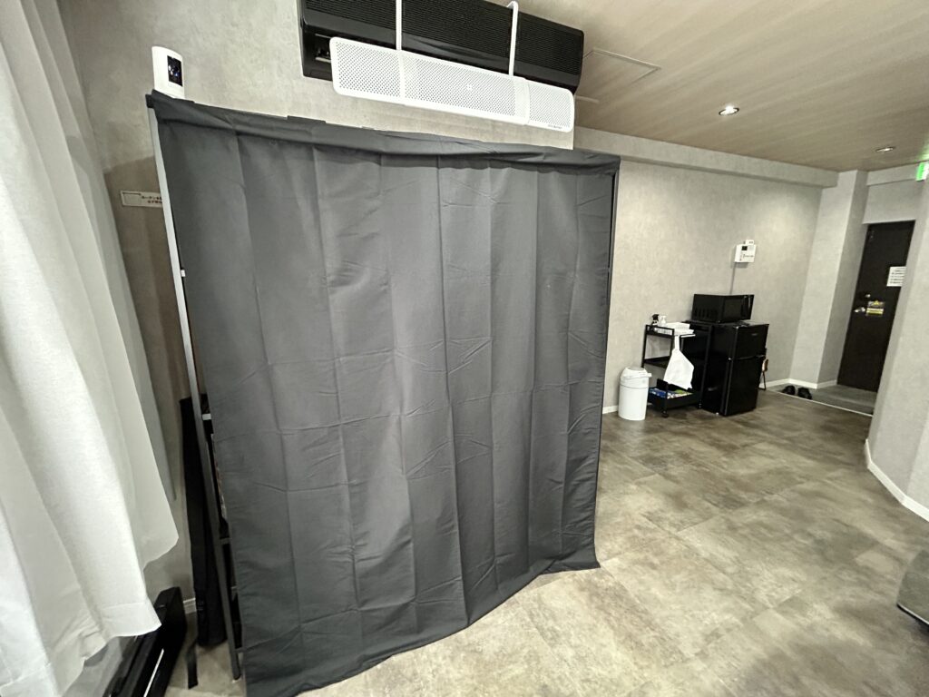 ボードゲームの棚を隠すことができるカーテンをご用意しております。